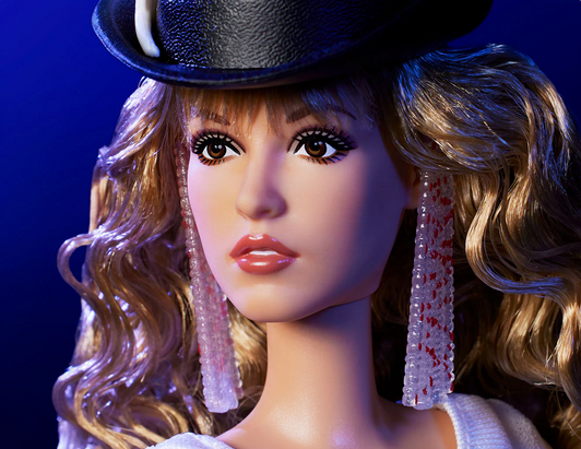 От фронтменки Fleetwood Mac до звезды сольного творчества, Стиви Никс десятилетиями была музыкальной иконой и образцом свободного стиля. Наш второй трибьют-образ Барби этой королеве рока вдохновлён её образом для обложки альбома Белла Донна, её первого сольного выступления. Она выходит на сцену в струящемся белом платье с лифом с рюшами, эффектными прозрачными рукавами и асимметричным подолом. Добавьте к этому её фирменный цилиндр, высокие белые сапоги и микрофон, и она готова выступать перед толпами восторженных поклонников.